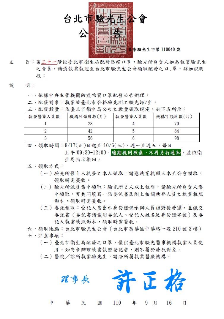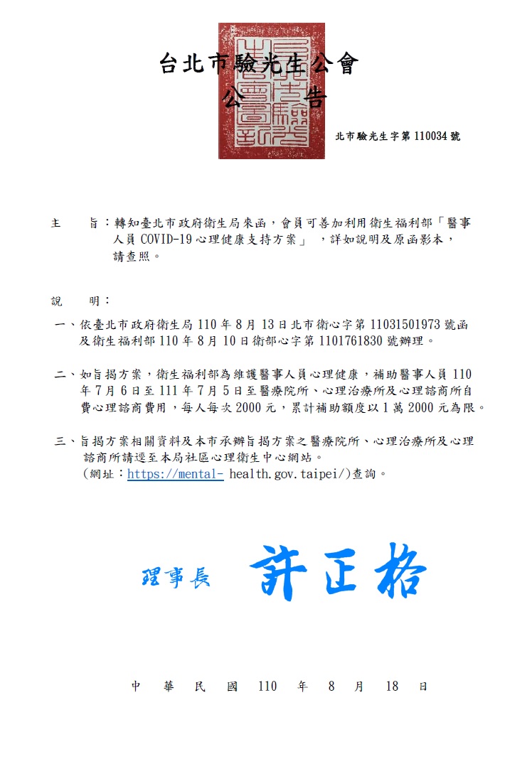 【會員通知】轉知臺北市政府衛生局北市衛疾字第1103041476號函