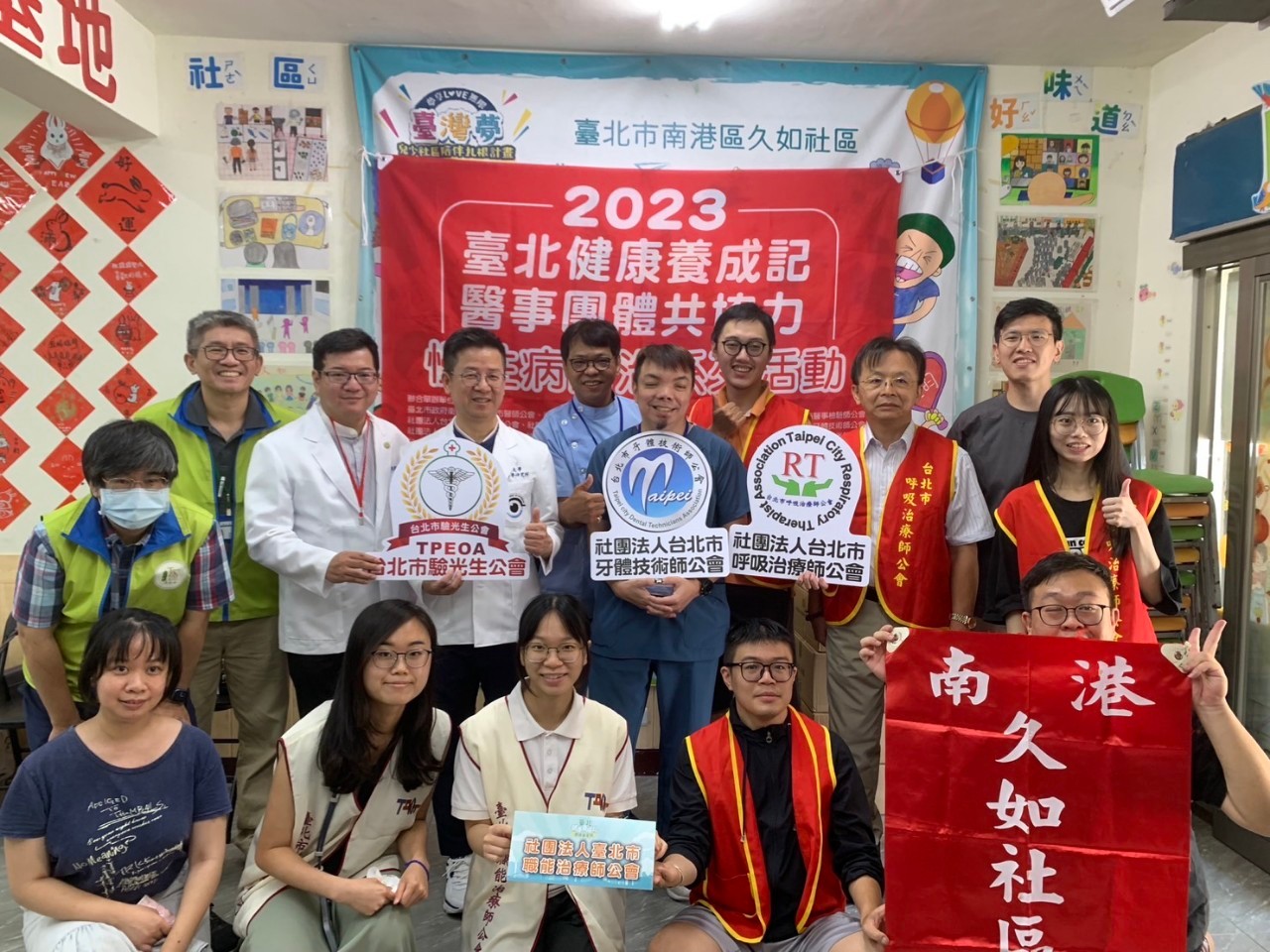 在臺北市政府衛生局支持下,舉辦2023「台北健康養成記,醫事團體共協力」慢性病防治系列活動,整合20大醫事公會推出「臺北有eye 健康生活更美好~整合性醫療宣導普及計畫」,以全人關懷的視角,用淺顯易懂的語言與互動方式,讓市民親自體驗各醫療專業社區服務,協助民眾瞭解各醫療專業領域的特點,落實於民眾日常生活,以促進臺北市民健康福祉。