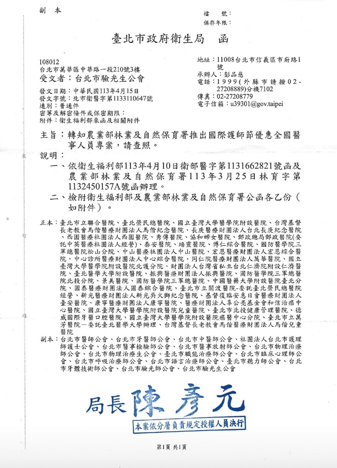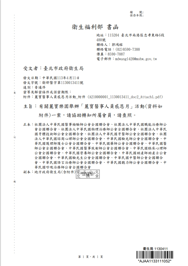 【會員通知】轉知衛生局北市衛醫字第113013411號函,有關麗寶樂園舉辦「麗寶醫事人員感恩月」活動,請查照。